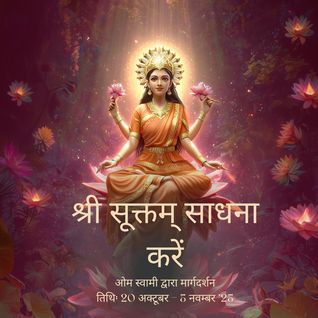 शक्तिशाली श्रीसूक्तम् का पाठ कीजिए और सार्वभौमिक ऊर्जा के साथ एकाकार स्थापित कीजिए। इससे आप जीवन के चार पुरुषार्थों—धर्म (आध्यात्मिक संपदा), अर्थ (भौतिक संपदा), काम (इच्छाओं की पूर्ति से प्राप्त सुख) और मोक्ष (मुक्ति)—की प्राप्ति की दिशा में अग्रसर हो सकते हैं।