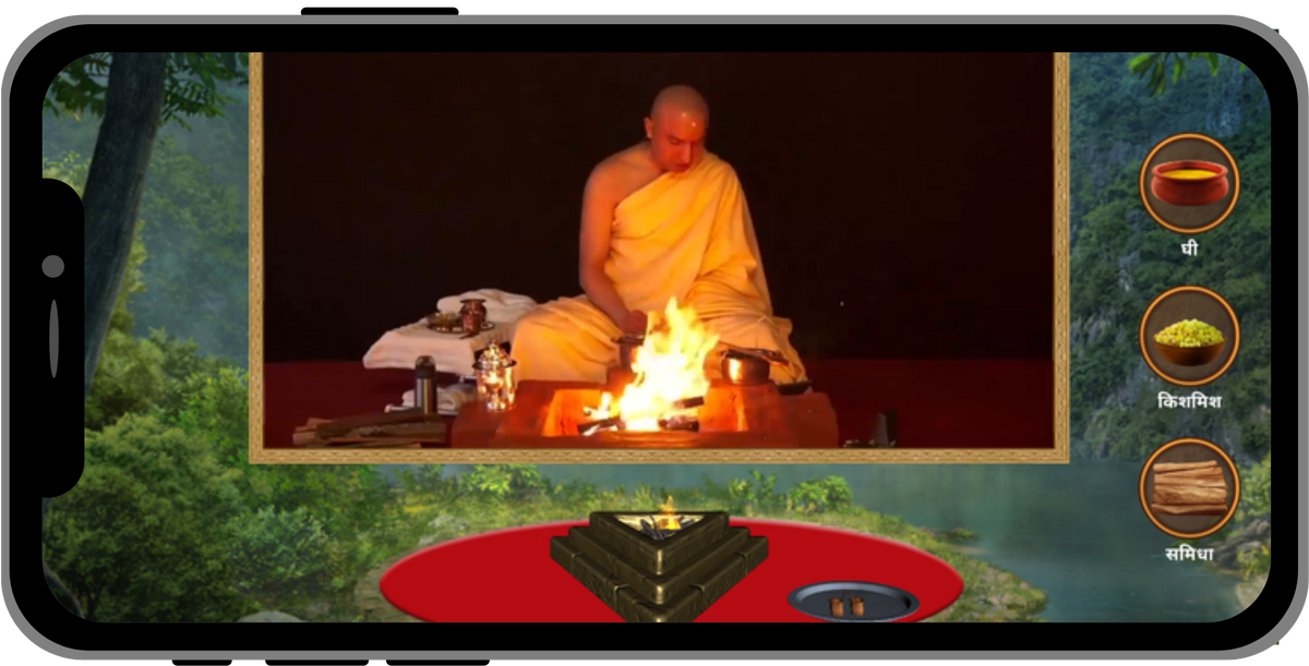 However, the yagna routine is super simplified in the app. While you perform the yagna under the guidance of Om Swami, the app will take care of all yagna logistics: ingredients, steps, and mantras.